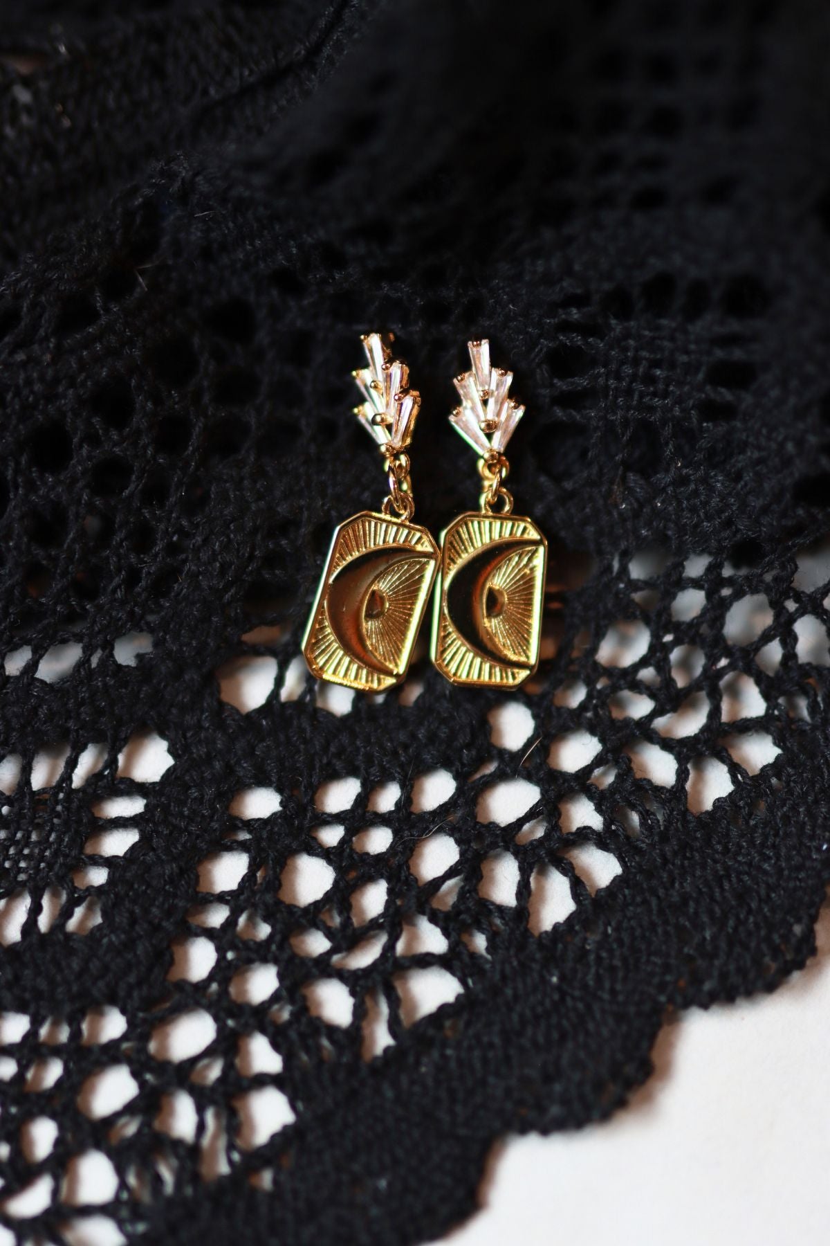 Inspired by the Moon tarot card, these earrings channel intuition, mystery, and divine feminine energy. A perfect adornment for those who trust their magic and follow the moonlight.