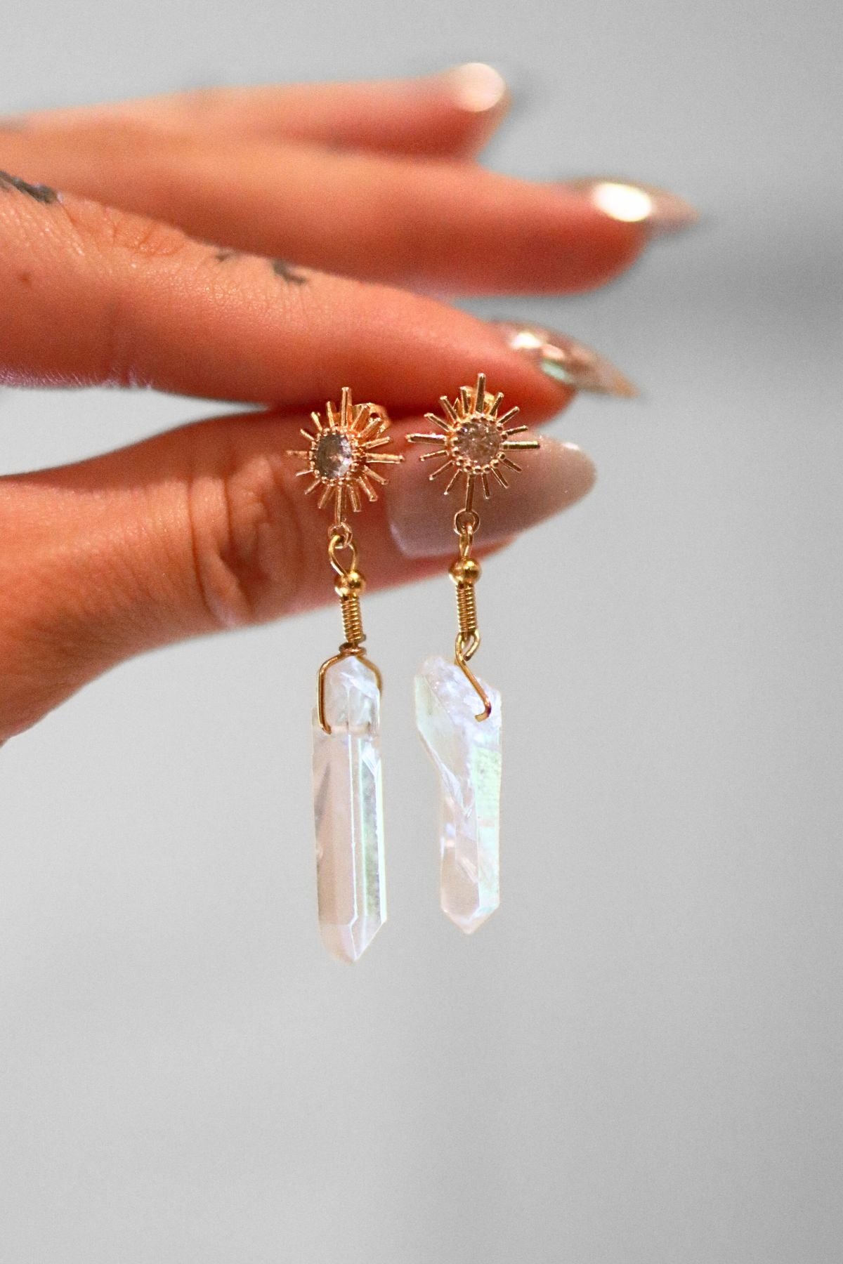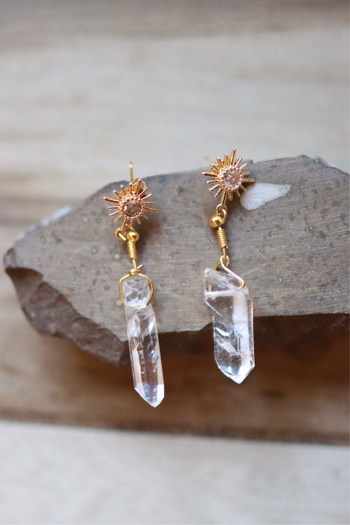 Handmade Sun & Clear Quartz earrings, with a stunning, and simplistic design.