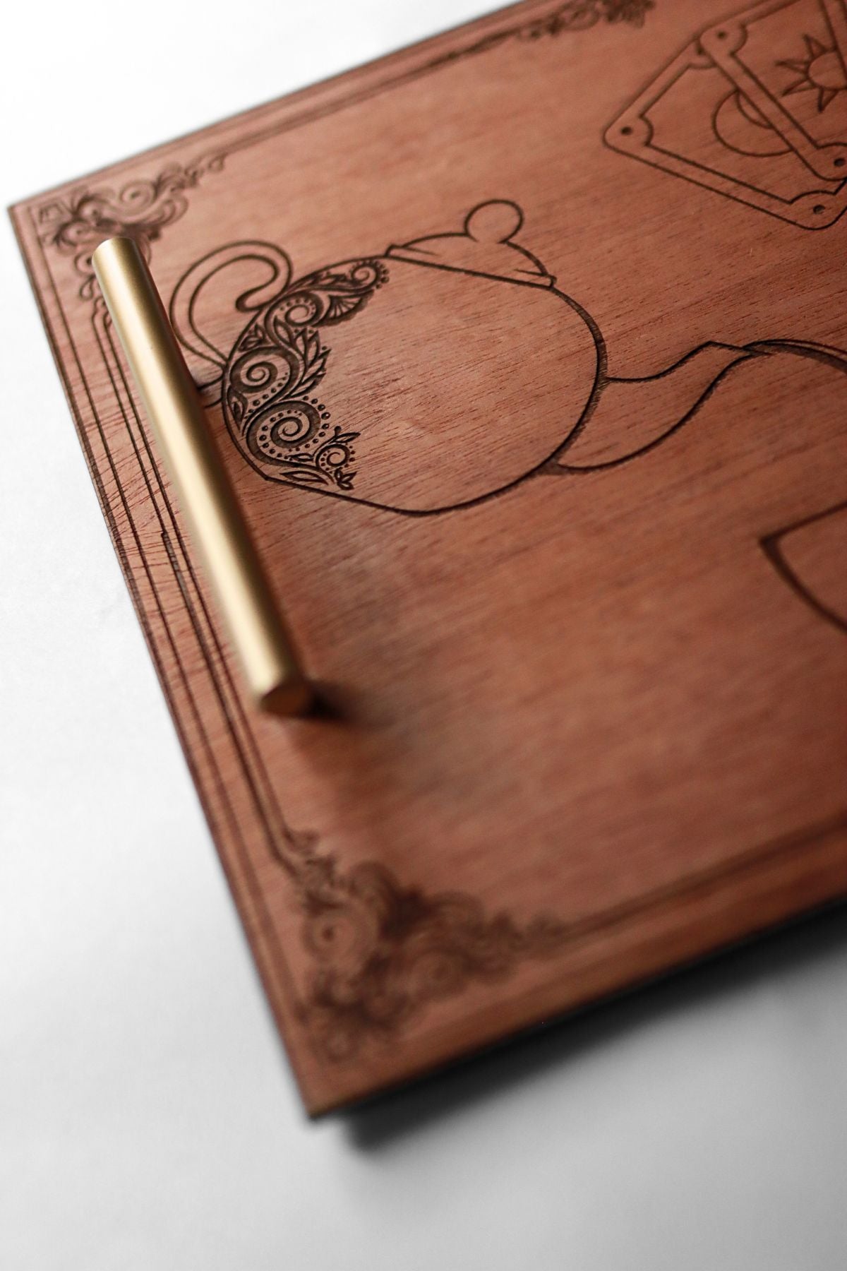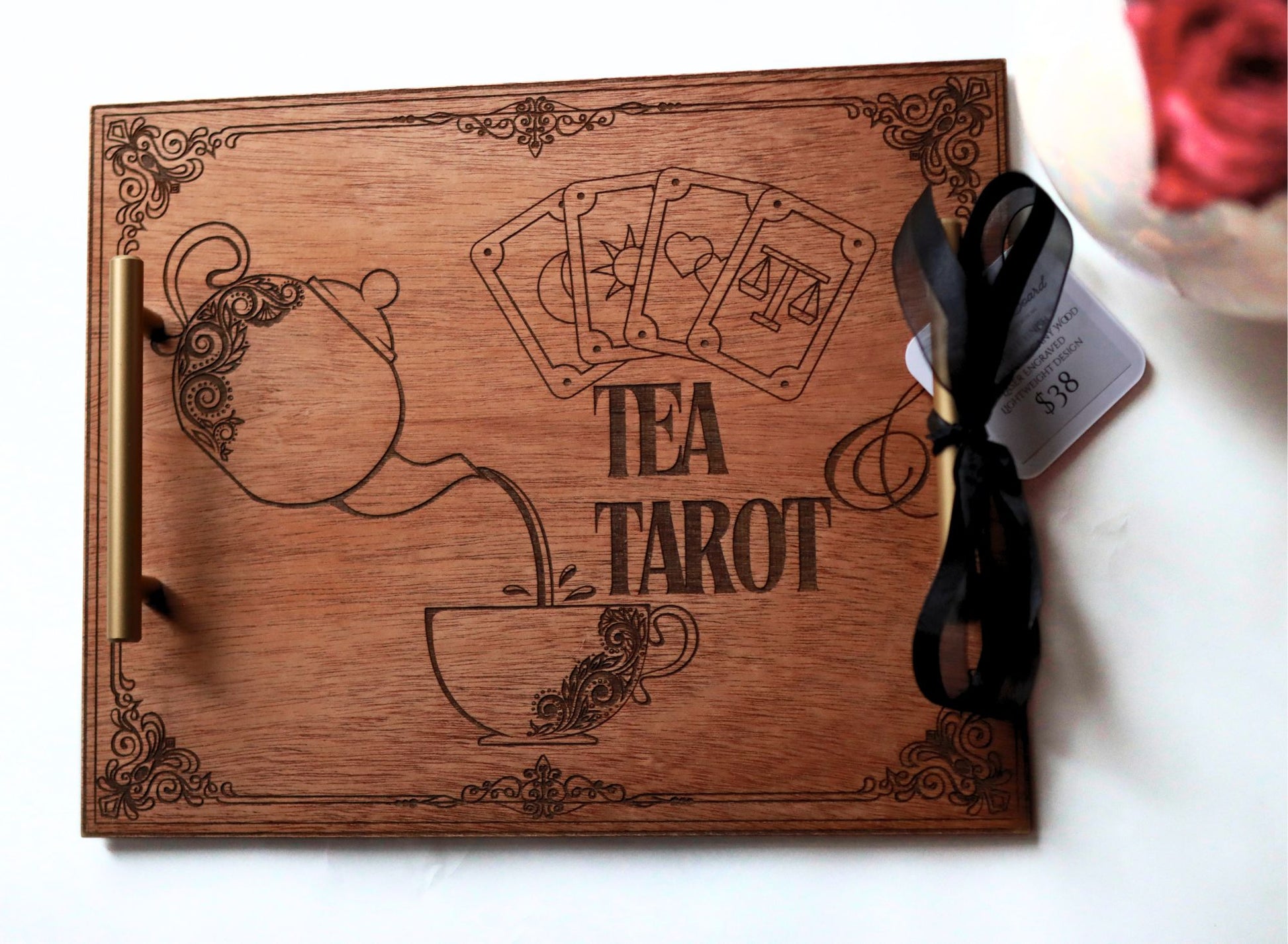 Crafted from rich mahogany wood and finished with a smooth, food-safe seal, this versatile tray brings a touch of magic to any space. Use it as a charcuterie board, serving platter, tea ritual tray, or let it double as a beautiful altar display for your tarot cards and daily intentions.